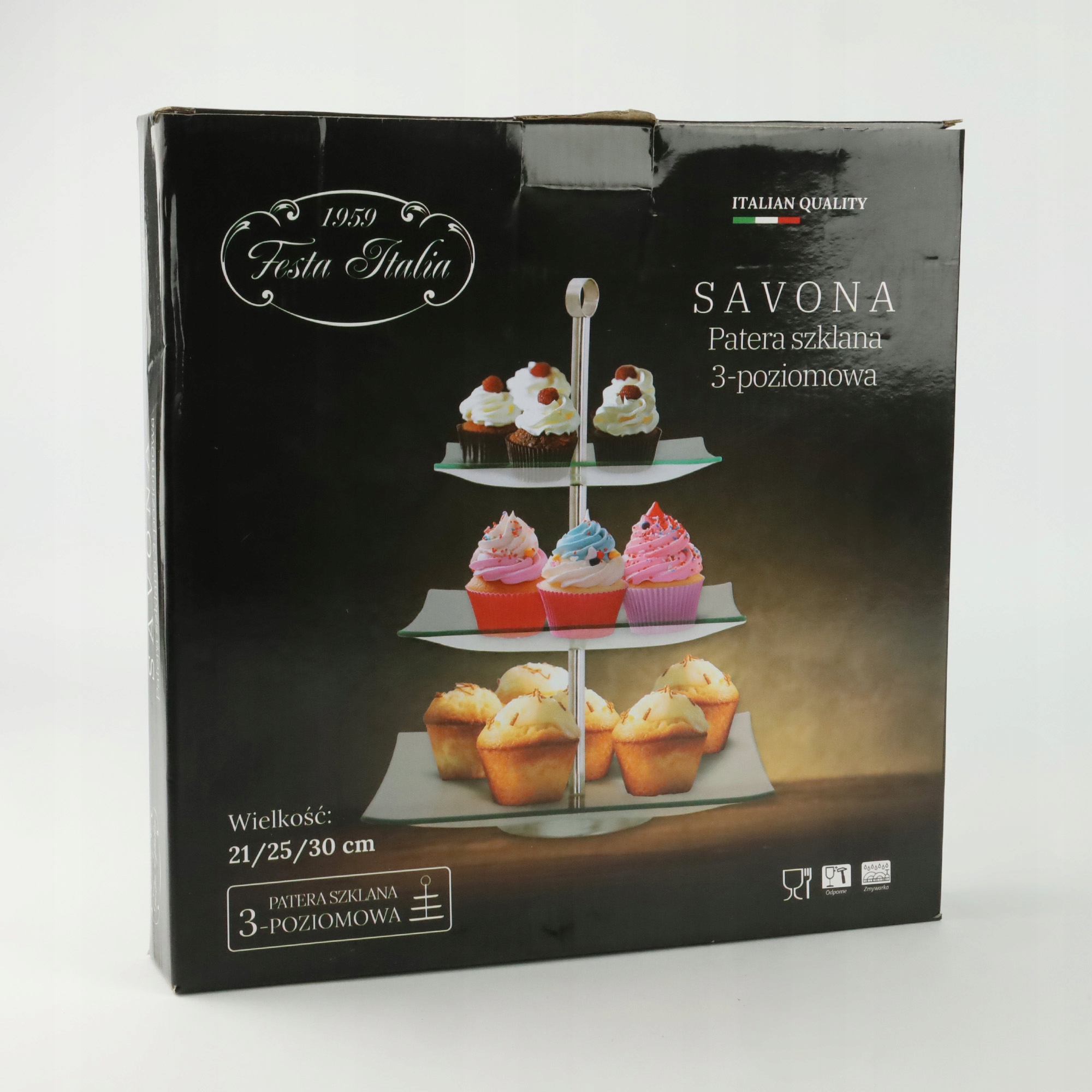 Szklana 3-poziomowa patera uznanej marki Festa Italia, specjalizującej się w wyrobach najwyższej jakości produktów ze szkła, ceramiki, porcelany... Od lat firma dostarcza tysiące produktów do domów klientów w całej Polsce. Marka cieszy się uznaniem dzięki możliwości wieloletniego i bezproblemowego użytkowania. Produkty Festa Italia idealnie uzupełniają wyposażenie kuchni, ułatwiają codzienne czynności domowe oraz pięknie prezentują i sprawdzają się podczas wszelakich imprez. Nasz asortyment można spotkać zarówno w domach jak i lokalach gastronomicznych takich jak np.: restauracje, bary, kawiarnie, pizzerie czy inne...
