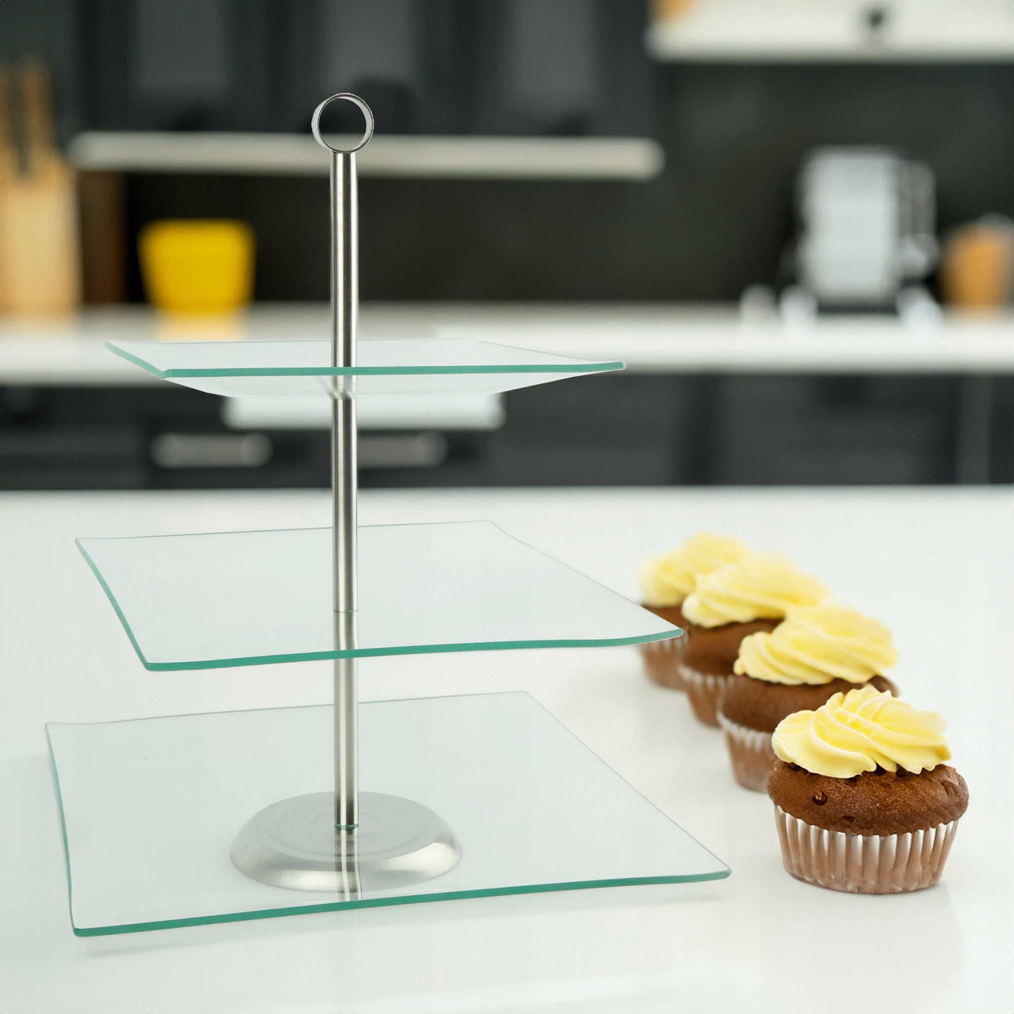 Patera Savona to eleganckie akcesorium kuchenne, idealne na urodziny, wesela czy spotkania świąteczne. Trzypoziomowa konstrukcja pozwala wygodnie rozdzielić przekąski, ciasta i owoce, oszczędzając miejsce i ułatwiając estetyczne podanie.