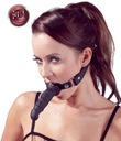 Zamknij się i pchaj! Półokrągły knebel do ust z dildo (12 cm, Ø 3 cm) na paskach lederrimita z regulowanym zapięciem na klamrę.