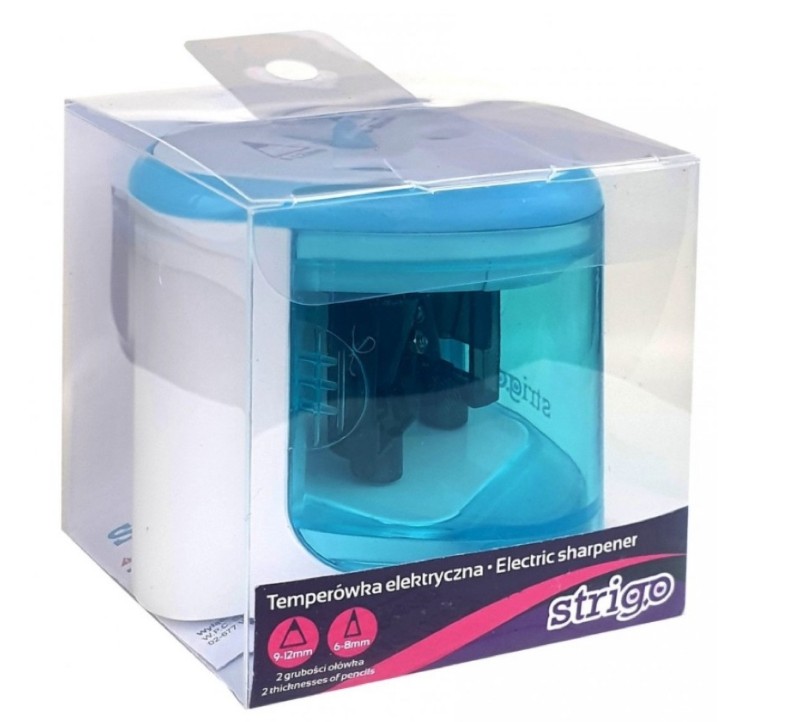 temperówka elektryczna, (wymaga użycia 4 baterii AA (tzw. paluszków), uwaga brak baterii w zestawie) dwie grubości temperowania (kredki klasyczne (około 8 mm i kredki grube (jumbo około 12 mm). blokada bezpieczeństwa w większym otworze wytrzymały i mocny silnik, (włącza się tylko podczas ostrzenia kredek) wyposażona w antypoślizgowe gąbki wymienne ostrza