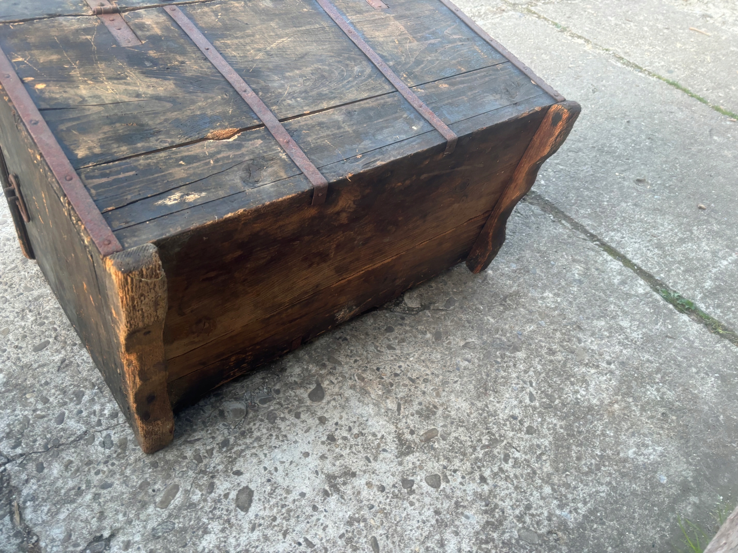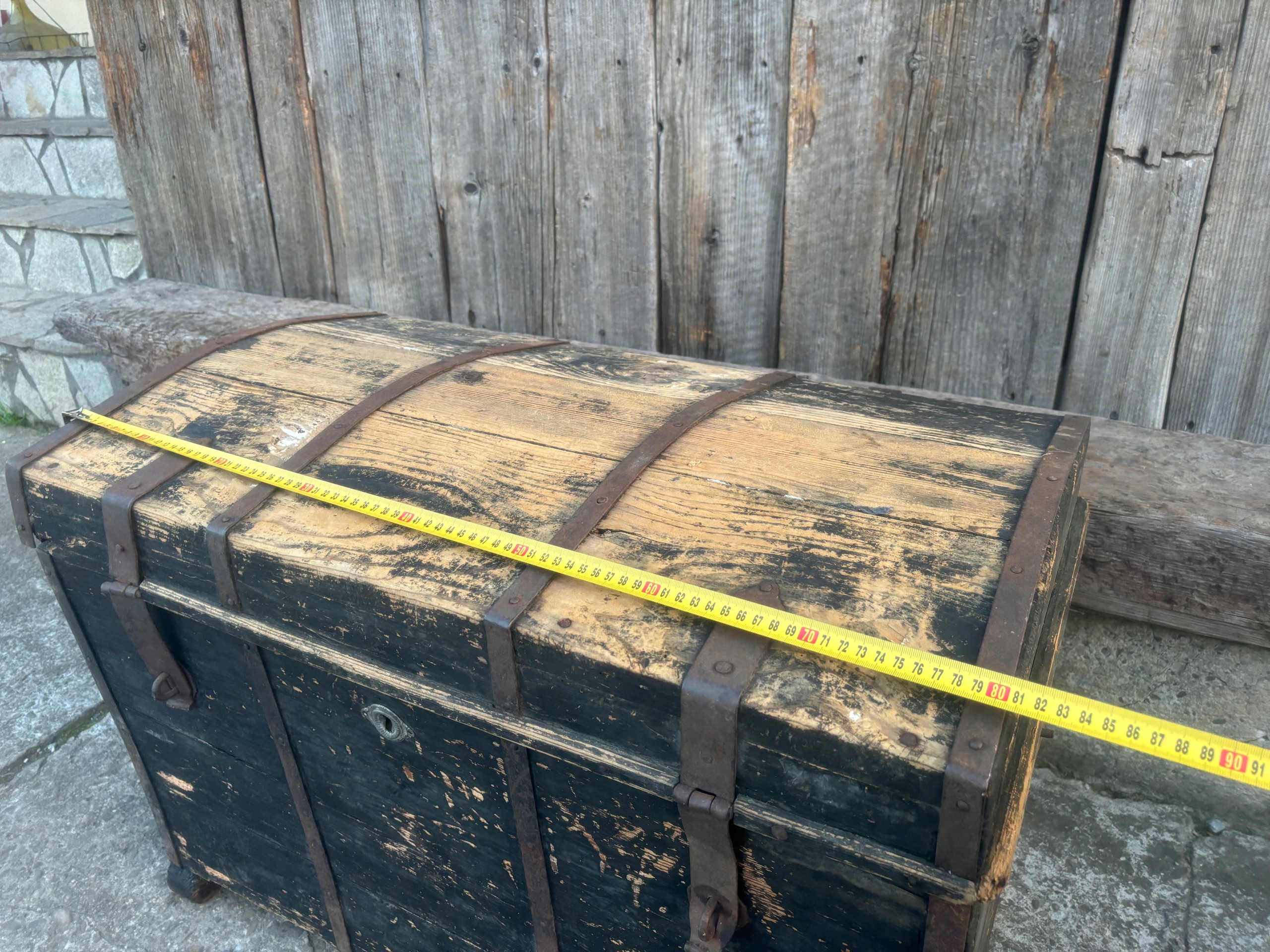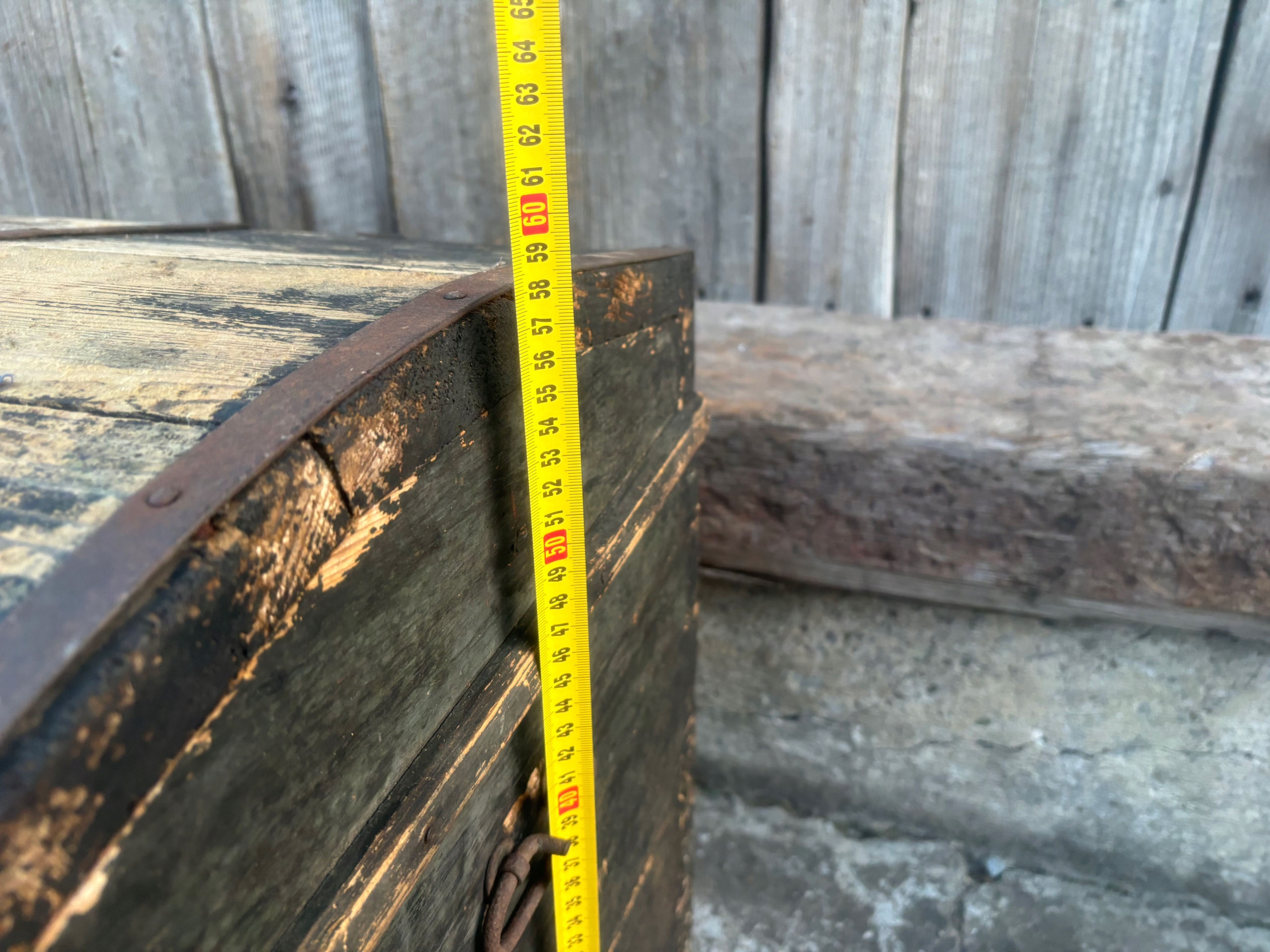 Stara drewniana skrzynia stan jak na foto.Kufer cały nie połamany.Do wysyłki zostanie solidnie zabezpieczony.