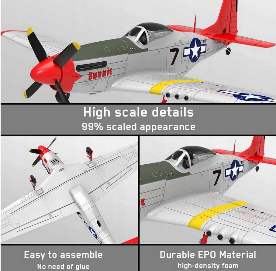 Mustang P51D 768-1 jest modelem zaprojektowanym przez VolantexRC. Charakteryzuje się niezwykłą wydajnością, stabilnością oraz łatwa kontrolą co jest dużym atutem w szczególności dla początkujących użytkowników. Zamontowany 6-osiowy żyroskop zapewnia stabilność potrzebną do lotu. Samolot posiada funkcję 3-poziomowego asystenta sterowania lotem (poziom początkujący z pełnym asystowaniem / średniozaawansowany z częściową asystą / ekspert w zakresie sterowania ręcznego) pomaga początkującym nauczyć się latać krok po kroku. Jego dodatkowym atutem jest możliwość wykonywania podstawowych akrobacji, oraz doskonały wygląd i możliwości, wzorowany na amerykańskim, jednosilnikowym myśliwcu z okresu drugiej wojny światowej.