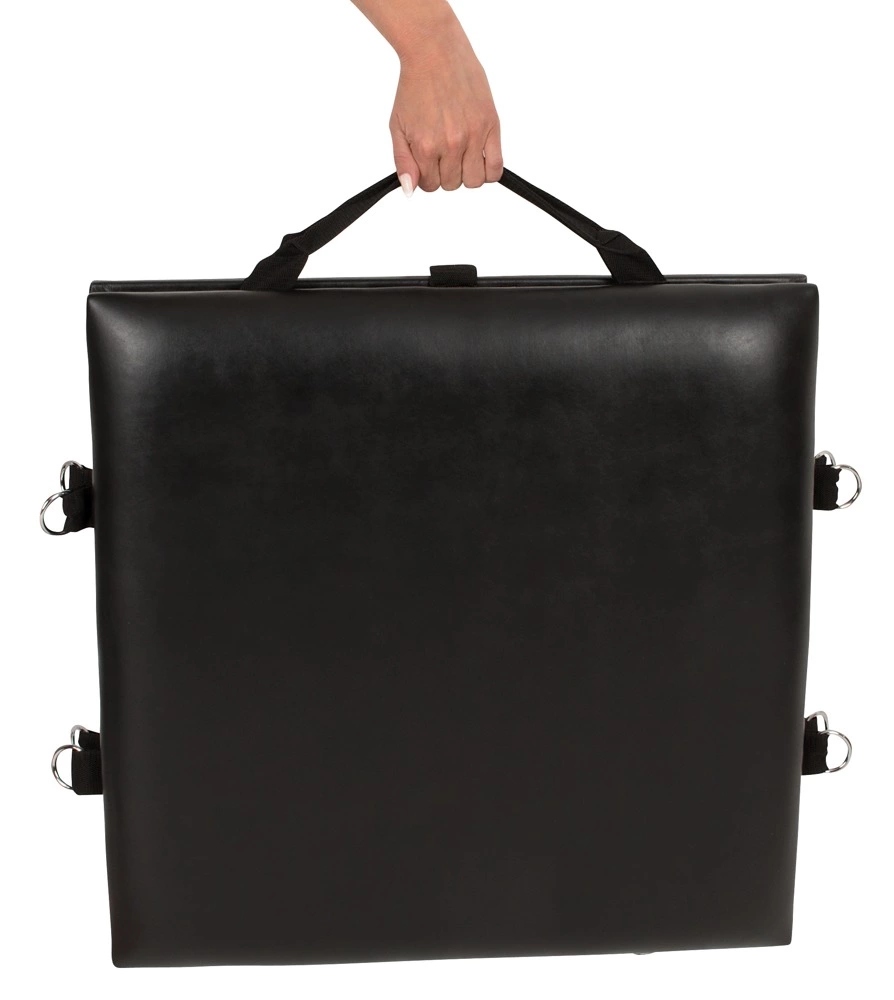 Dzięki Bondage Board możesz teraz realizować swoje fantazje erotyczne niemalże wszędzie. Czarna tablica niewolnicza jest składana i nie zajmuje prawie żadnego miejsca w domu. Bondage Board można łatwo transportować za pomocą odpowiedniego uchwytu podróżnego. W ten sposób kara jest możliwa w każdym pożądanym miejscu.