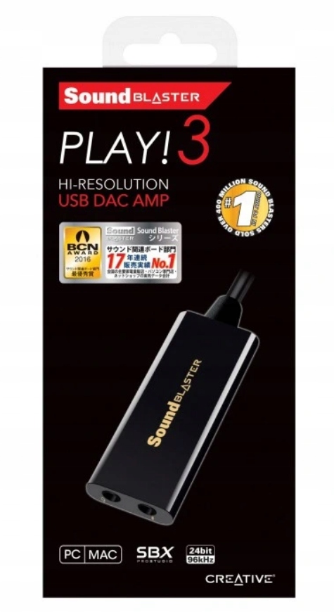 Urządzenie działa z komputerami PC i Mac, dostarczając ogromne wzmocnienie dźwięku dla szerokiego zakresu słuchawek, począwszy od zwykłych słuchawek dousznych aż po słuchawki do gier oraz przeznaczone do użycia studyjnego. Dostępne do pobrania oprogramowanie Sound Blaster PLAY! 3 Control Panel zapewnia doskonały realizm oraz zaawansowane efekty dźwiękowa w tym zoptymalizowane profile dźwiękowe dla wybranych marek słuchawek.
