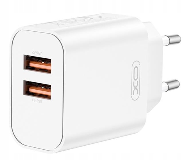 Ładowarka sieciowa wyposażony w dwa gniazda USB umożliwia ładowanie telefonu, tableta, smartfona lub innego urządzenia, które wymaga zasilania za pomocą kabla USB oraz mocy 5 V.