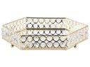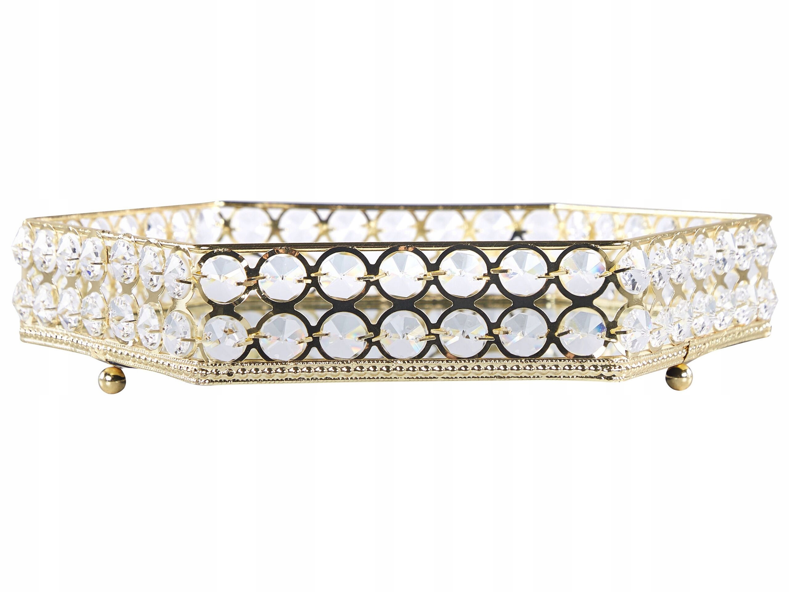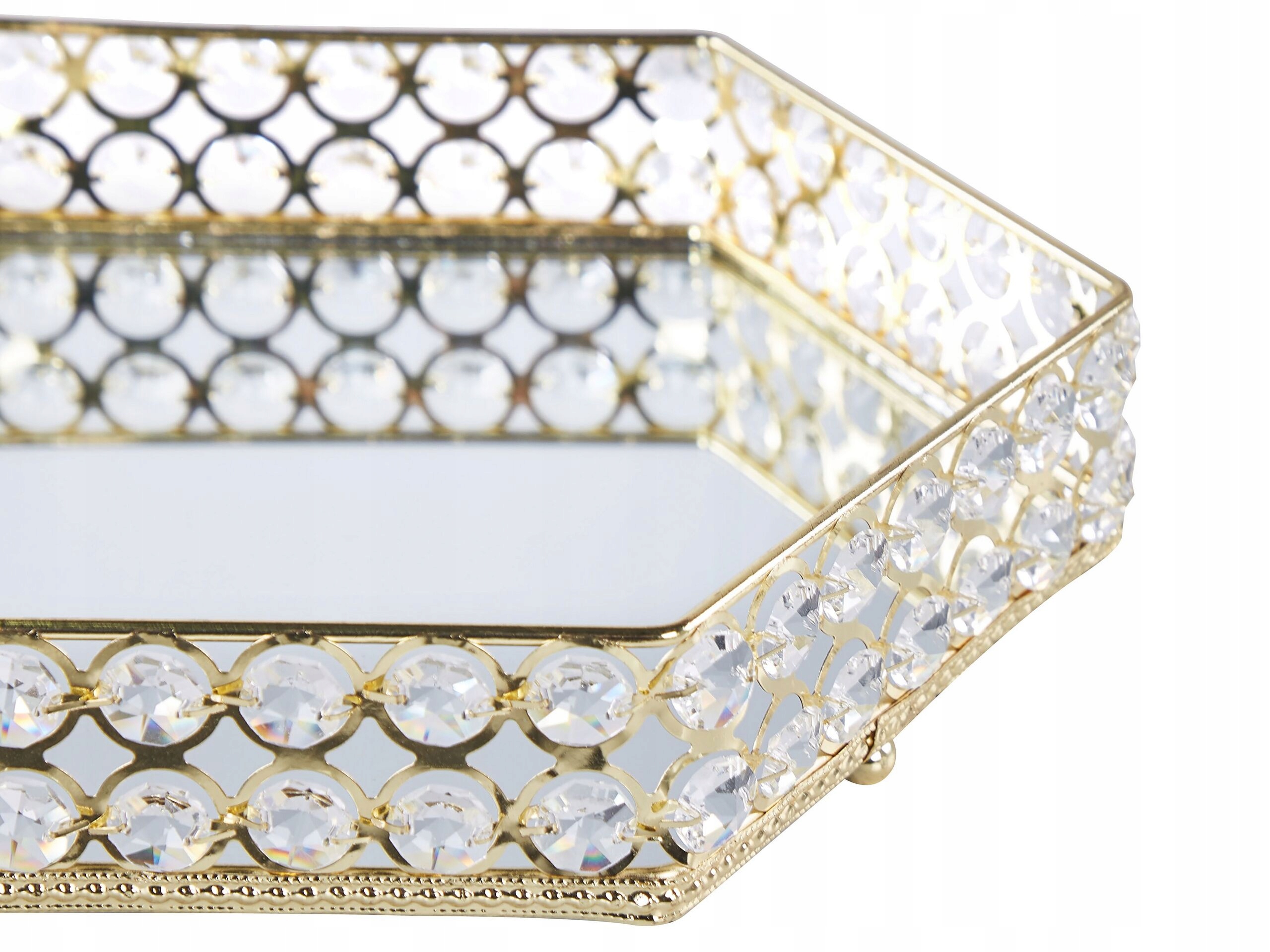 Ta elegancka taca jest praktycznym, a zarazem dekoracyjnym dodatkiem do każdego pokoju w stylu glamour. Wykonana z metalu, posiada lśniące szklane kryształki i lustrzane dno, które pięknie odbija otoczenie. Taca jest lekka, dzięki czemu możesz ją z łatwością przenosić z miejsca na miejsce. Wykorzystaj ją w sypialni do przechowywania biżuterii i innych drobiazgów lub w salonie jako stylową ozdobę wnętrza.