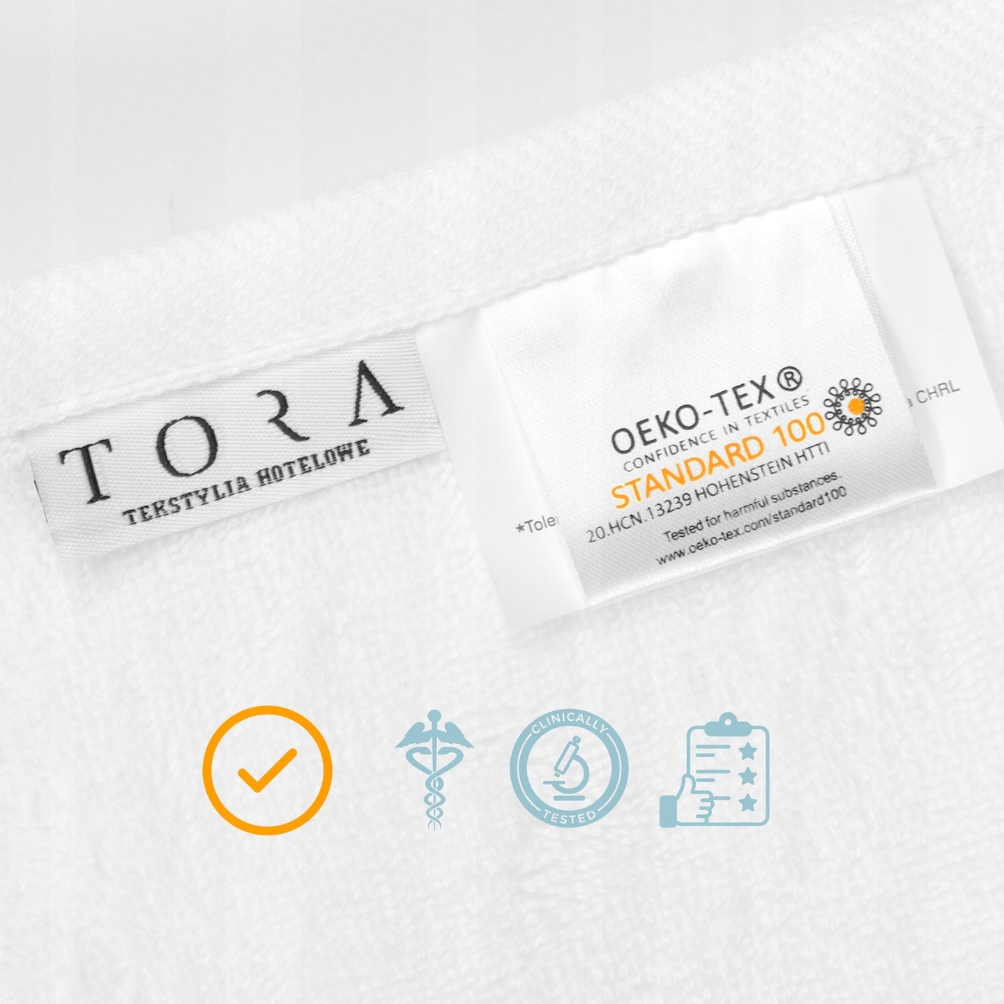 Wszystkie produkty marki TORATEX posiadają certyfikat Oeko-Tex Standard 100, co świadczy o ich najwyższej jakości i bezpieczeństwie. Certyfikat ten gwarantuje, że nasze ręczniki są wolne od substancji szkodliwych dla zdrowia, takich jak formaldehydy, pestycydy czy alergeny. Dzięki temu możesz mieć pewność, że nasz produkt jest bezpieczny dla całej rodziny.