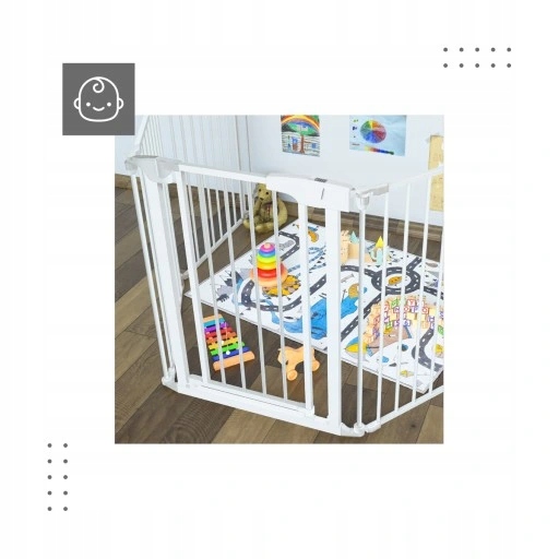 Barierka pozwala wygodnie wydzielić przestrzeń lub zabezpieczyć jej część. Łatwo ustawić ją w kształcie kojca, w którym dziecko będzie mogło się bezpiecznie bawić, gdy Ty zajmujesz się innymi sprawami. Świetnie sprawdzi się też jako bariera dla zwierzaka domowego. Otwieranie i zamykanie barierki jest niezwykle proste, a jednocześnie niedostępne dla dziecka.