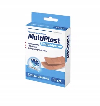 Plastry MultiPlast Wodoodporne wykonane są z folii polietylenowej stanowiącej doskonałą barierę dla wody. Plastry sprawdzają się w codziennych czynnościach, gdy konieczna jest ochrona rany przed zanieczyszczeniami i wodą. Brzegi plastrów ściśle przylegają do skóry i nie odklejają się pod wpływem wilgoci. Jednocześnie plastry te są przewiewne i oddychające, a opatrunek zapewnia wysoką chłonność. Hipoalergiczny klej akrylowy nie powoduje uczuleń.