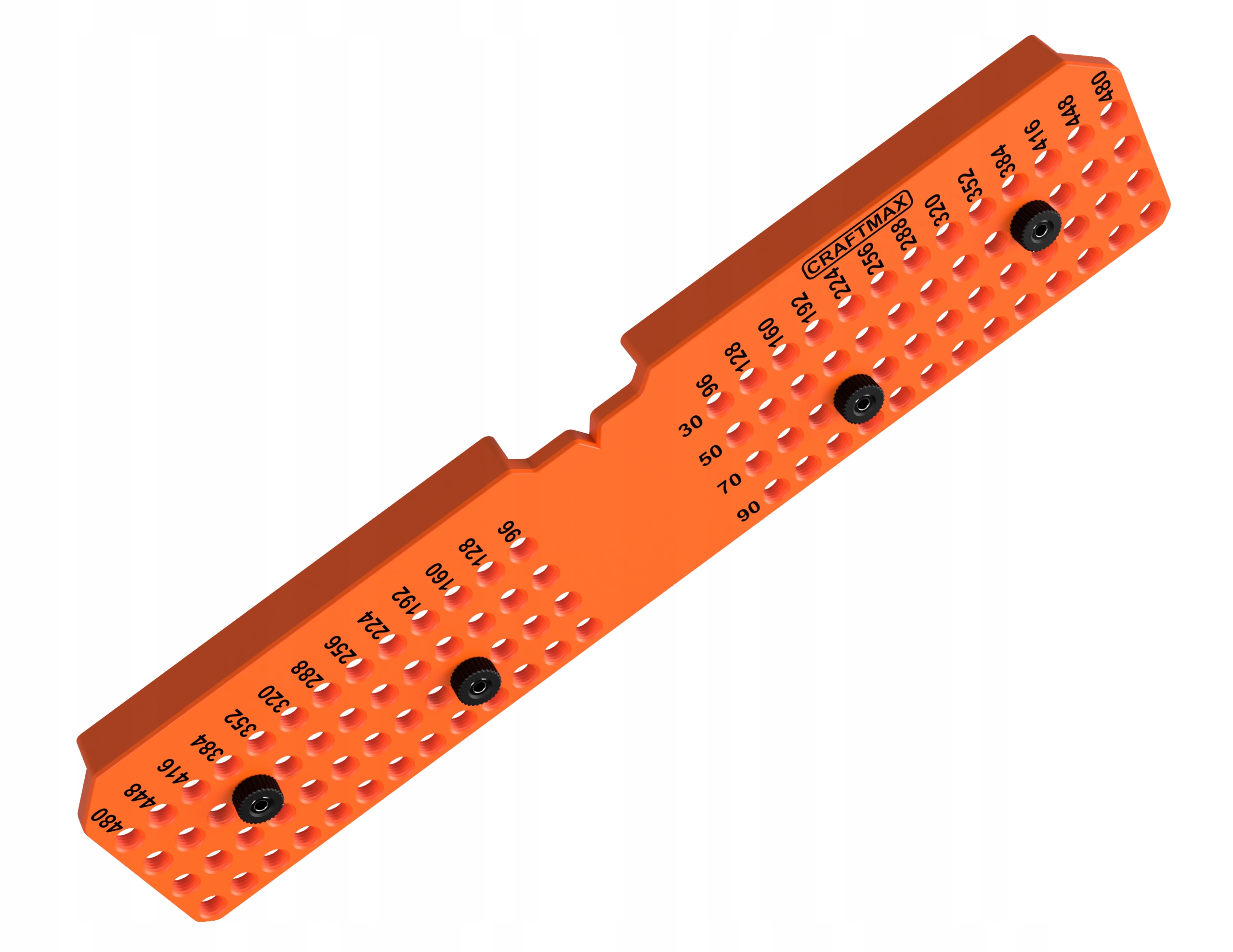 Precyzyjny szablon umożliwiający szybkie i dokładne wiercenie otworów pod uchwyty meblowe w rozstawie do 480 mm. Posiada cztery rzędy gwintowanych otworów, w które wkręca się radełkowane nakrętki ze zintegrowaną tuleją wiertarską. Dzięki temu użytkownik może łatwo dopasować pozycję wiercenia do pożądanego rozstawu oraz rodzaju montażu – wystarczy wkręcić tuleje w odpowiednie miejsca zgodnie z wybranym układem.