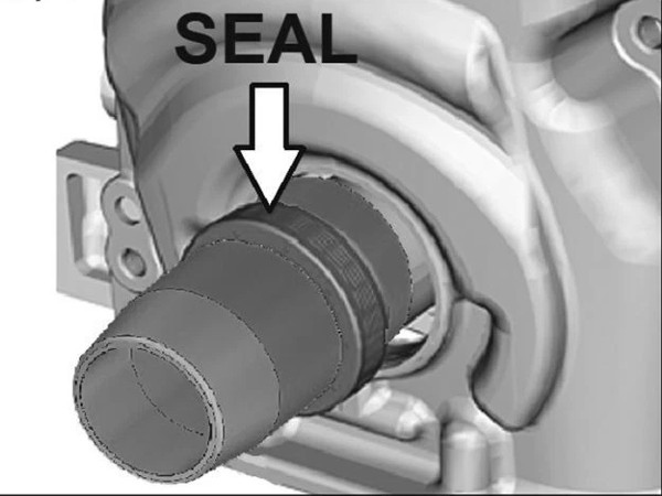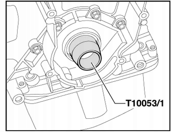 5) Wsuń uszczelkę olejową do oporu w obudowę rozrządu za pomocą narzędzia montażowego i uderzaj równomiernie.