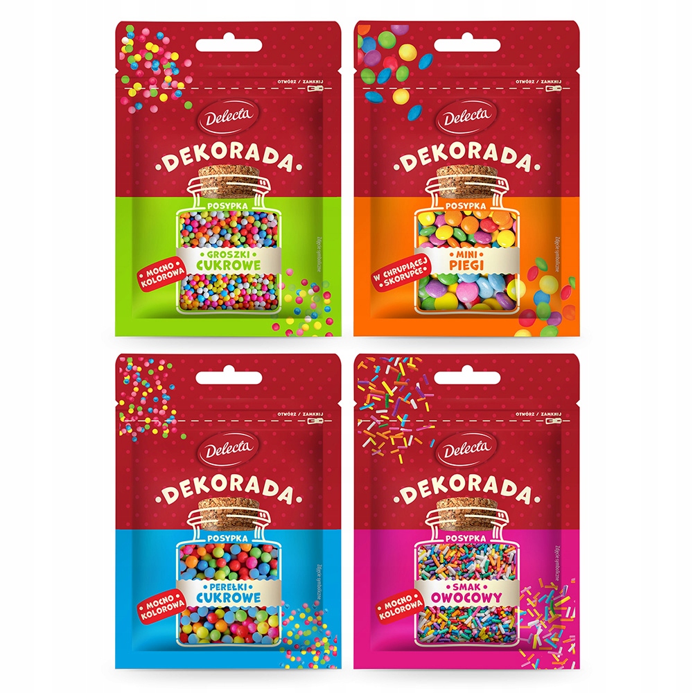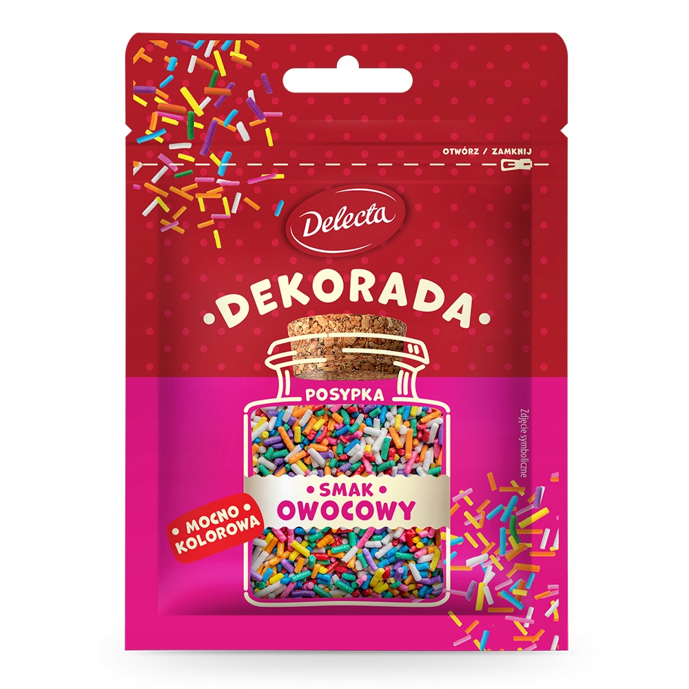 Cukier, olej słonecznikowy, skrobia ziemniaczana, mąka ryżowa, aromat, barwniki: kurkumina, karmin, błękit brylantowy FCF, antocyjany.