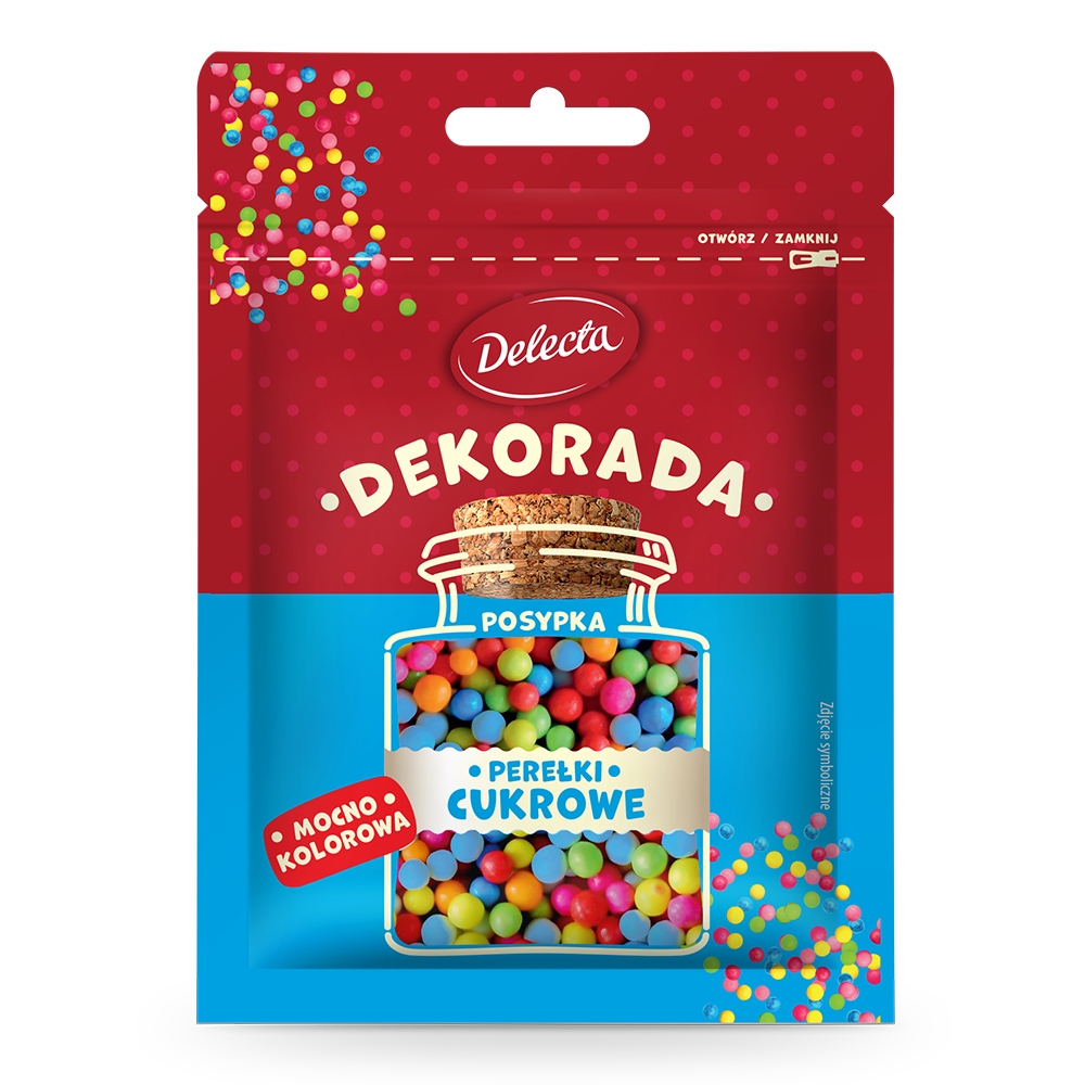Cukier, glukoza, syrop glukozowy, skrobia pszenna, barwniki: ryboflawiny, karmin, błękit brylantowy FCF; substancja glazurująca: szelak.