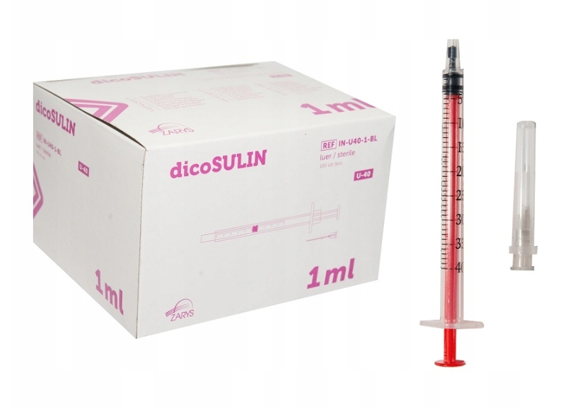 ☑️ Jest to produkt jednorazowego użytku, zapakowany sterylnie i pojedynczo. Dostępny jest w opakowaniu zbiorczym zawierającym 100 sztuk produktu – strzykawek o pojemności 1 ml/40 j.m. z igłami nakładymi o wymiarach 0,40 x 13 mm.