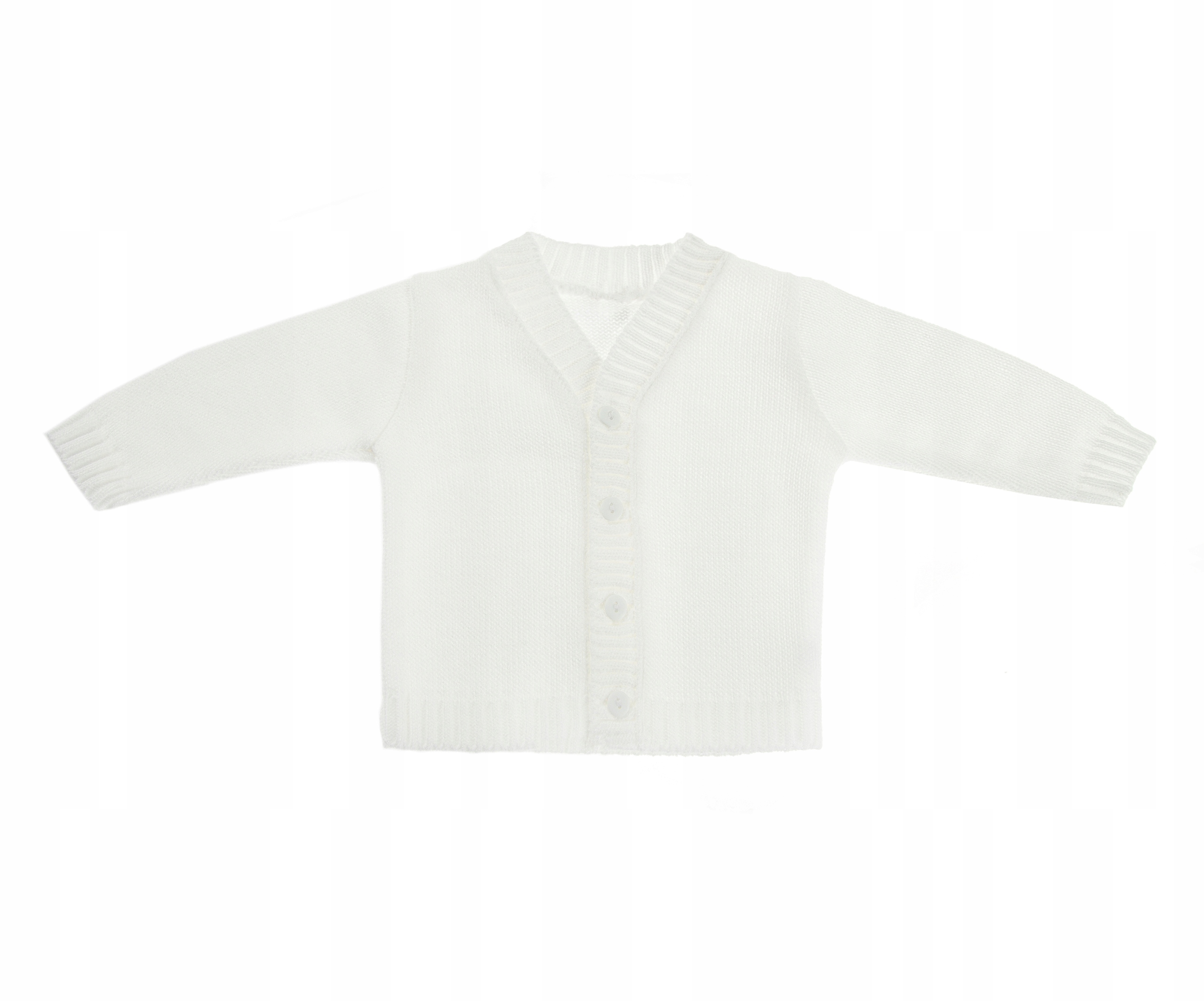 Piękny, gładki sweterek zapinany na guziki, wykonany z delikatnej dzianiny, idealny na Chrzest i inne okazje.