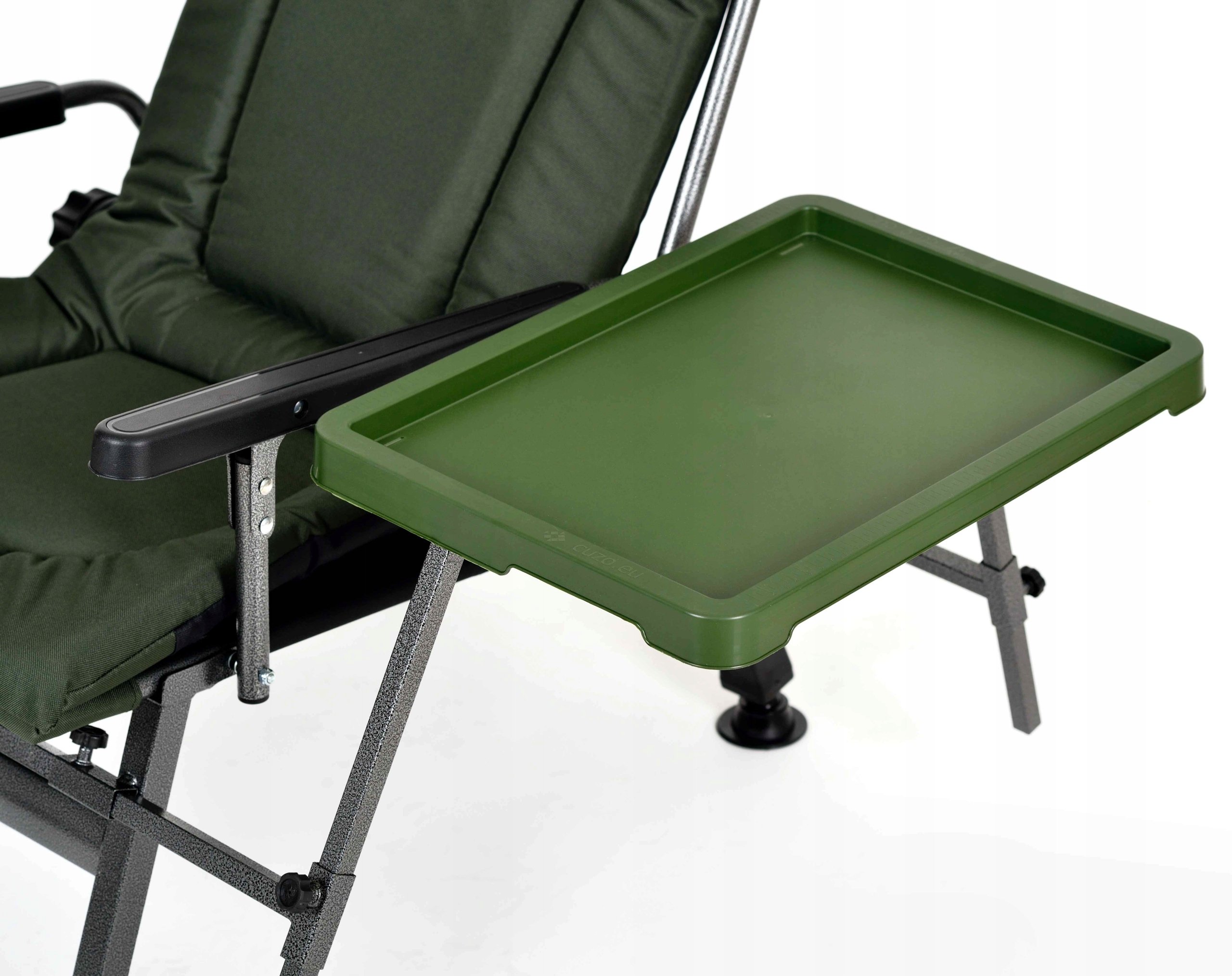 Dodatkowo został wyposażony w system mocowań, dzięki którym można zamontować podręczny stolik z regulowaną wysokością na drobne akcesoria wędkarskie oraz uchwyt na wędkę z regulowanym kątem nachylenia i regulacją wysokości.