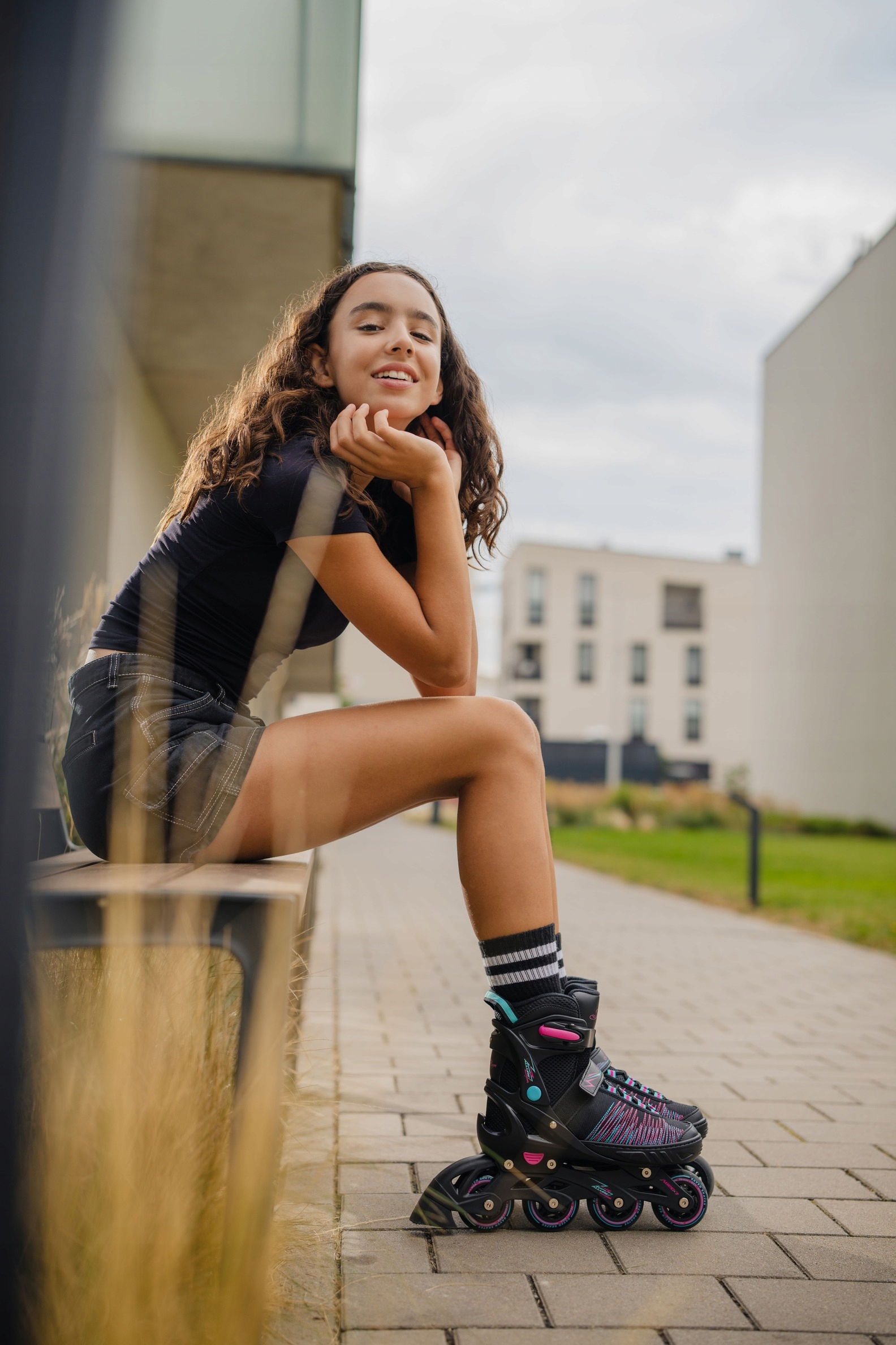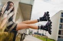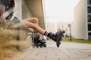 Do zmiany rozmiaru niepotrzebne są żadne narzędzia. Wystarczy nacisnąć przycisk i rozsunąć przednią skorupę buta. Dzięki temu rolki posłużą na wiele sezonów i zawsze będą dobrze dopasowane do rozmiaru stopy.