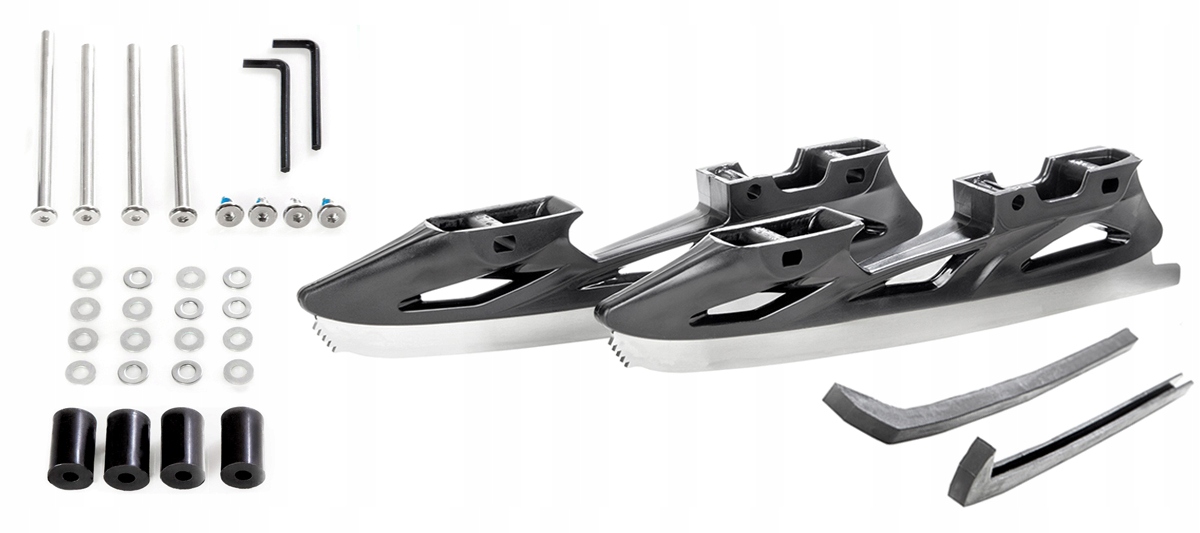 Klucze, śruby oraz dłuższe osie umożliwiające odkręcenie kółek i zamontowanie ich po obu stronach płozy rolkowej celem uzyskania pożądanej konfiguracji. Ułatwia to stawianie pierwszych kroków na rolkach, pomaga utrzymywać równowagę i zmniejsza możliwość przewrócenia się.