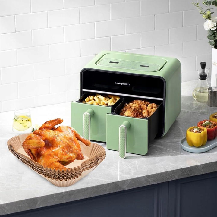 Zachowuj czystość swojej frytkownicy za pomocą tych jednorazowych wkładek papierowych, które skutecznie zatrzymują resztki jedzenia, sprawiając, że urządzenie pozostaje równie czyste, jak gdyby było nieużywane. To praktyczne rozwiązanie, które oszczędza czas i wysiłek, zwłaszcza jeśli unikasz czyszczenia po każdym użyciu.