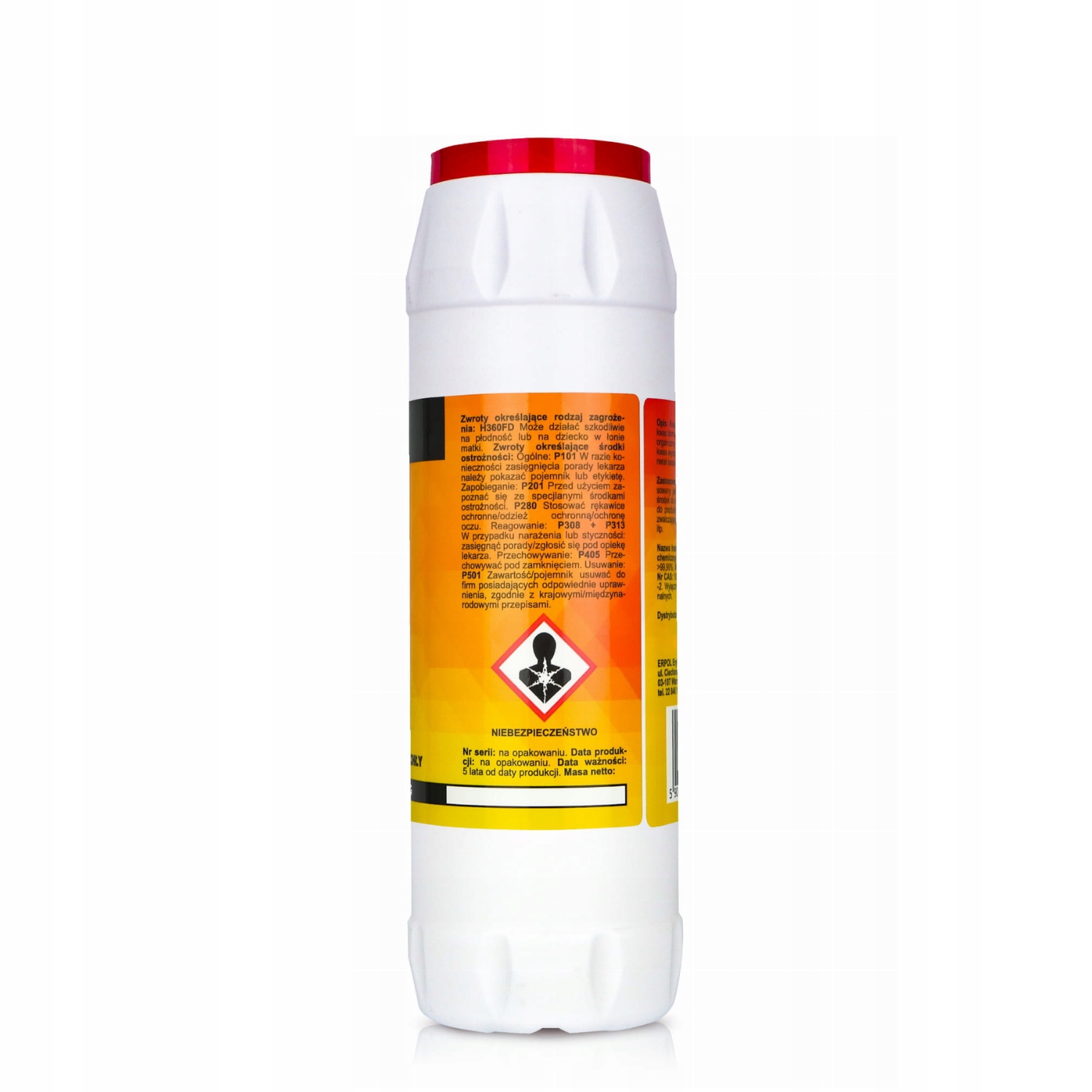 Aplikuj proszek poprzez opylanie lub rozpuszczanie w wodzie, w zależności od potrzeb. Na drewno nakładaj równomiernie, aby zapewnić impregnację. Do czyszczenia powierzchni stosuj niewielką ilość, rozprowadzając na blaty lub podłogi. Przechowuj w suchym miejscu, z dala od dzieci i zwierząt. Opakowanie z dozownikiem ułatwia precyzyjne użycie.