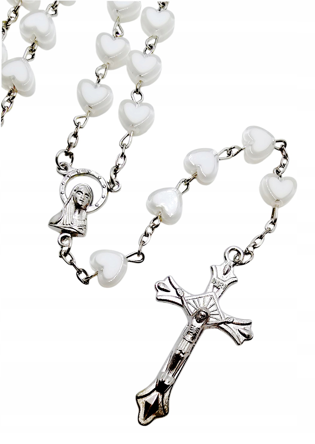 Odkryj głębię modlitwy i piękno wiary z tym niezwykłym, białym różańcem, który przenosi duchowe doświadczenie na nowy poziom. Każdy koralik w kształcie serca symbolizuje miłość – miłość do Boga, miłość do bliźniego i miłość, którą Matka Boża otacza świat. To nie tylko narzędzie do odmawiania różańca, to prawdziwa ozdoba duszy i ciała.