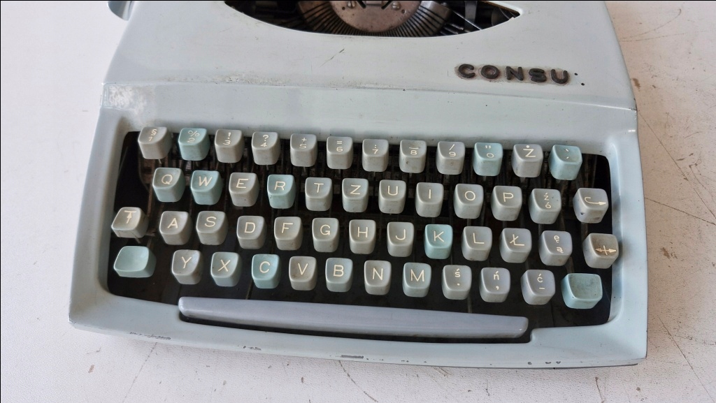 MAM DO SPRZEDANIA MASZYNĘ DO PISANIA CONSU MASZYNA JEST W STANIE WIZUALNYM WIDOCZNYM NA ZDJĘCIACH W AUKCJI. POSIADA NORMALNE ŚLADY UŻYTKOWANIA W POSTACI ZARYSOWAŃ I ZABRUDZEŃ. MECHANIZM JEST SPRAWNY.
