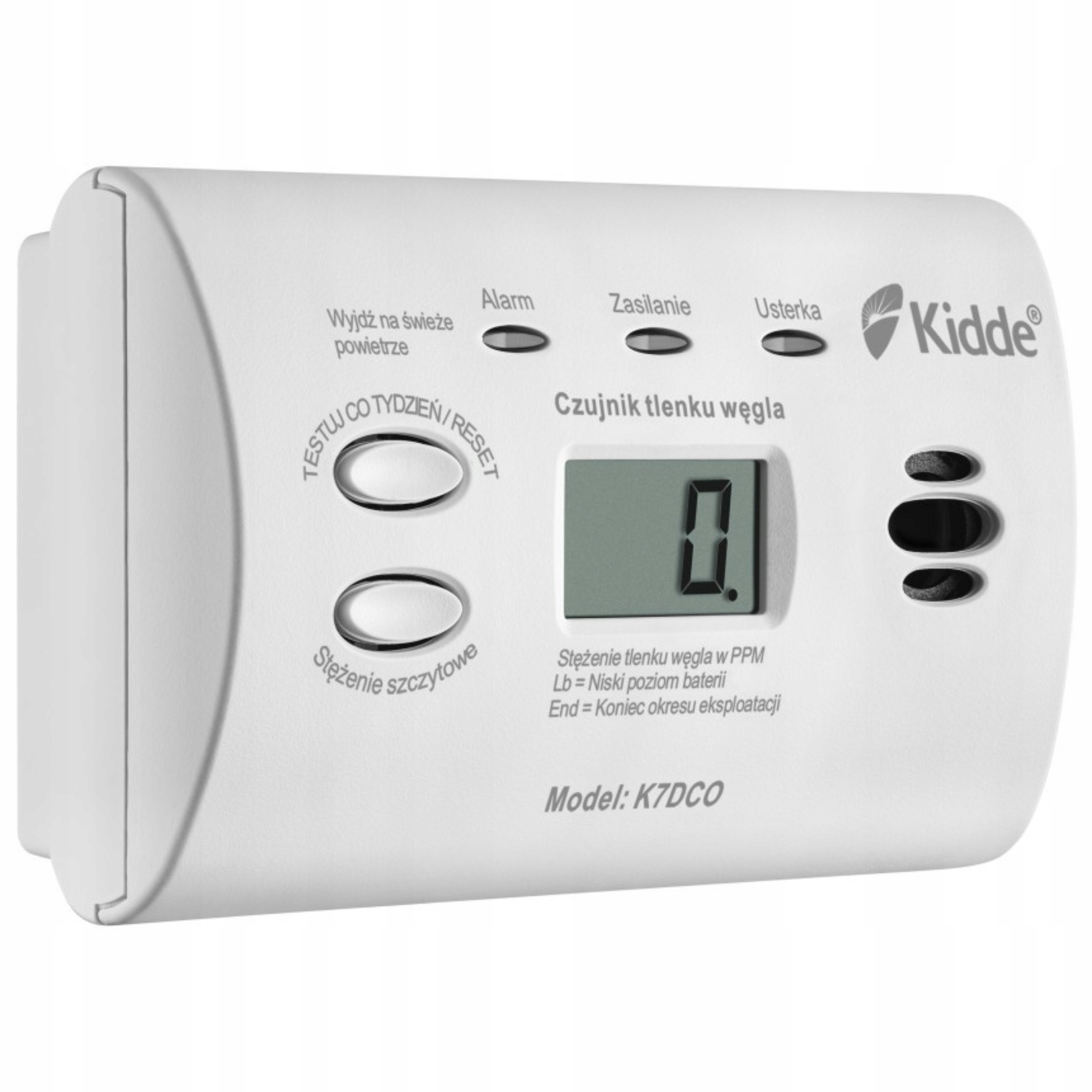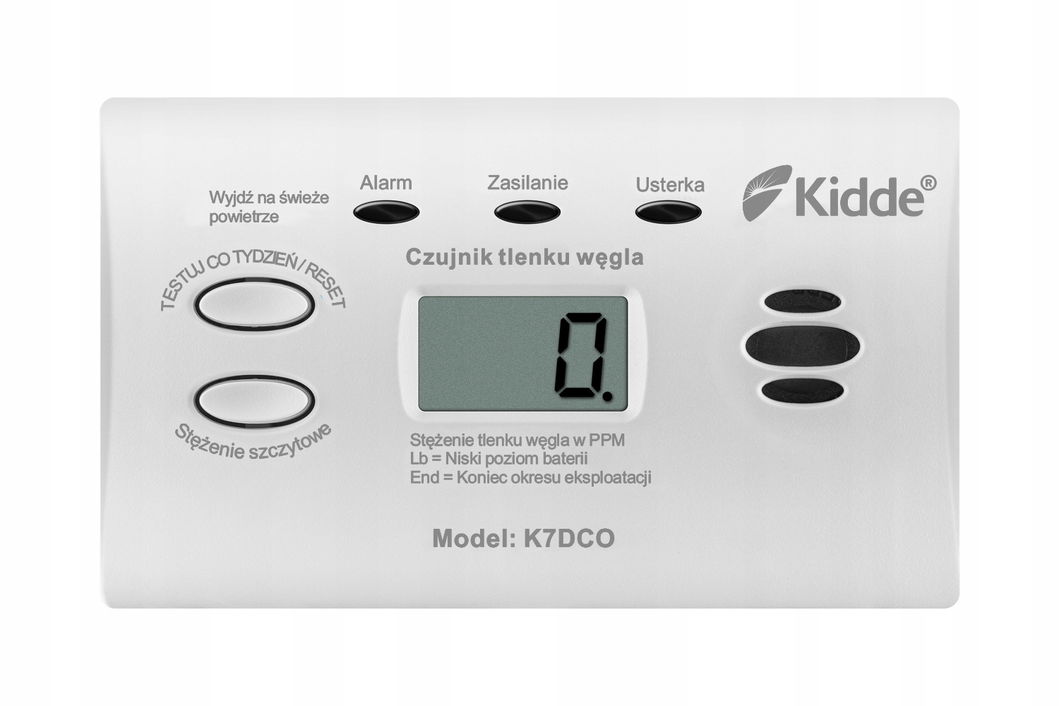 Czujnik tlenku węgla z wyświetlaczem K7DCO wyposażony w sensor elektrochemiczny Kidde, gwarantujący 10-letni okres pracy.