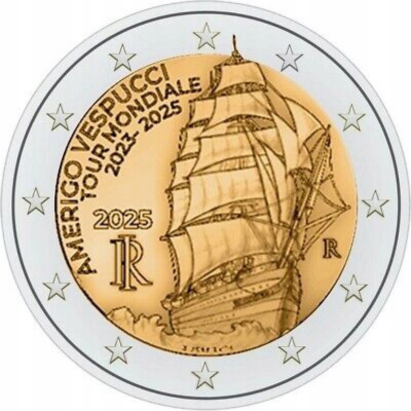Druga moneta okolicznościowa wyemitowana w 2025 roku przez Włochy świętuje zakończenie światowej podróży legendarnego żaglowca „Amerigo Vespucci”, która odbyła się w latach 2023–2025.
