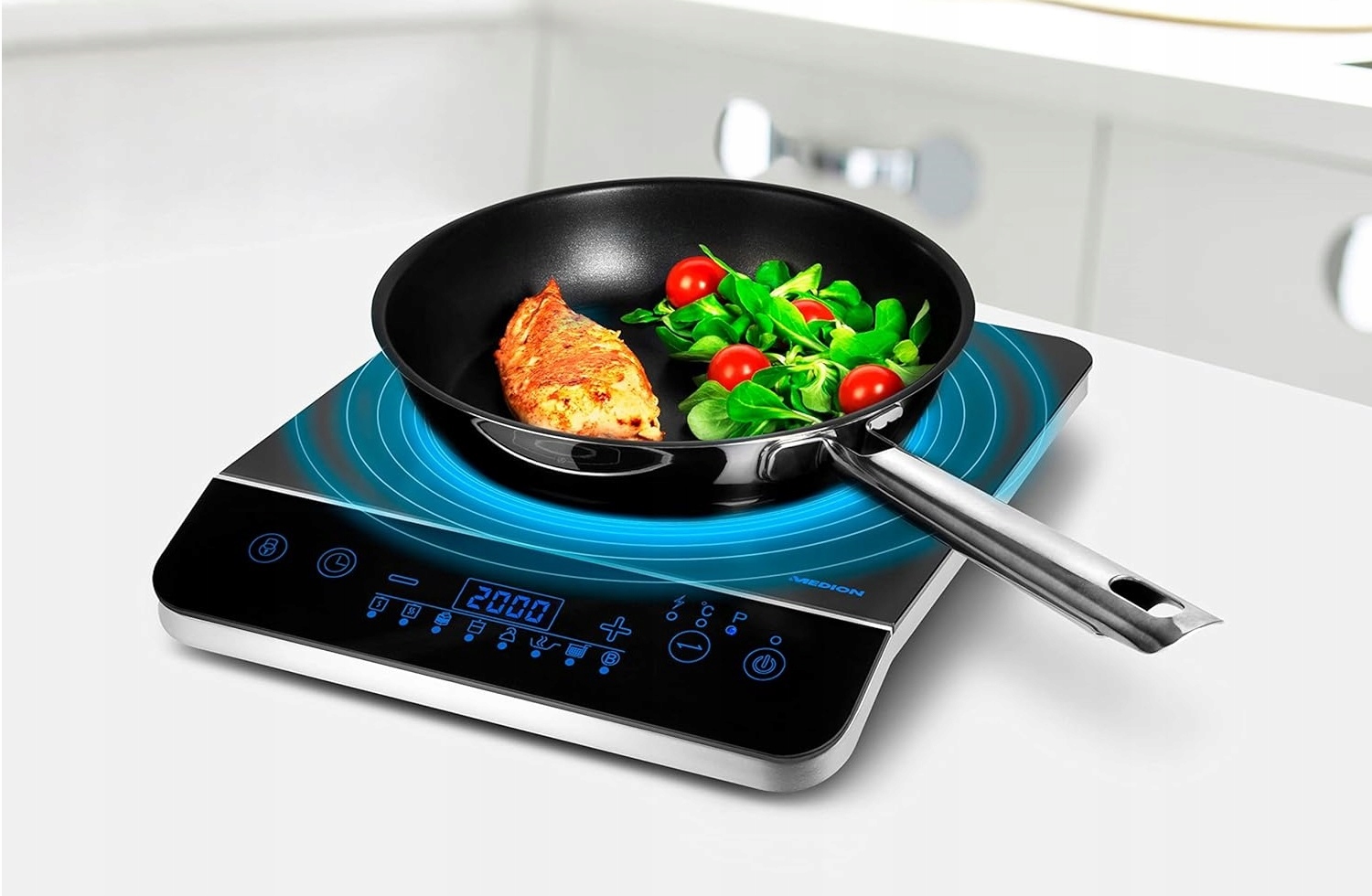 Mało miejsca, a mimo to chcesz gotować na profesjonalnym poziomie? Indukcyjna płyta grzejna firmy MEDION wykorzystuje najnowocześniejszą technologię kuchenną, dzięki czemu Twoje jedzenie w mgnieniu oka znajdzie się na stole. Jest szybki, wymaga niewielkiej mocy i jest całkowicie bezpieczny - idealny do małych mieszkań studenckich lub na wakacje na kempingu. Czy potrzebujesz dodatkowej płyty grzejnej na duży rodzinny obiad w czasie wakacji? Twój piec jest zepsuty i potrzebujesz alternatywy do gotowania? W biurze lub szopie ogrodowej nie ma miejsca na kompletną kuchnię? Tutaj indukcyjna płyta grzejna MEDION jest dokładnie na właściwym miejscu!