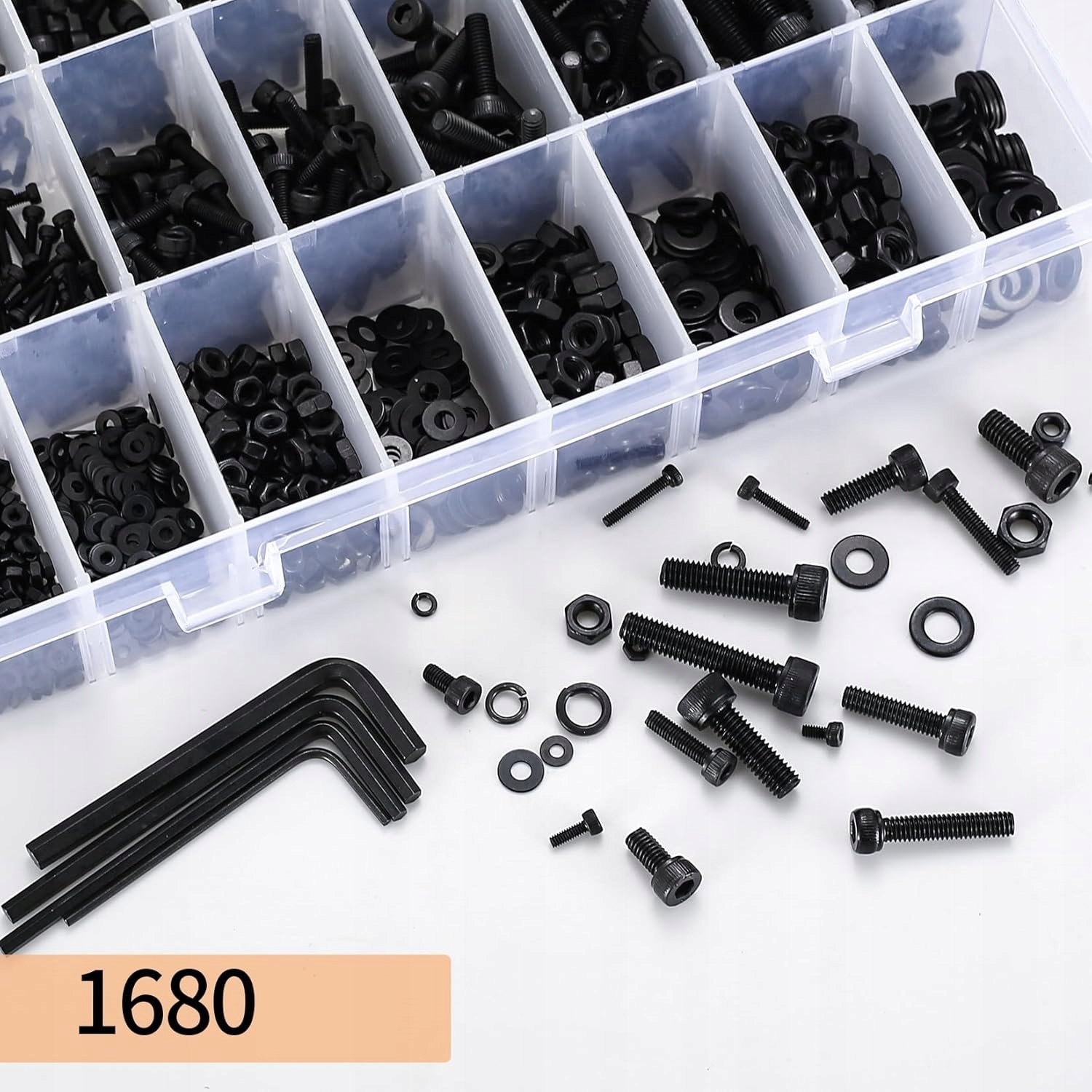✔️Aż 1680 elementów: śruby, nakrętki i podkładki w różnych rozmiarach