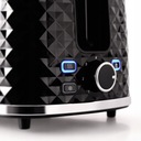Jest funkcjonalny, wygodny w użyciu i bardzo elegancki. Ma dwa szerokie miejsca na grzanki, specjalną nadstawę do opiekania pieczywa oraz praktyczną tackę na okruchy. Jego obudowa się nie nagrzewa, a praca jest sygnalizowana zapaloną lampką kontrolną. Co ważne urządzenie posiada także funkcję odmrażania pieczywa. Można też w dowodnym momencie zakończyć czas zaprogramowanego w tosterze opiekania, korzystając z przycisku "STOP".