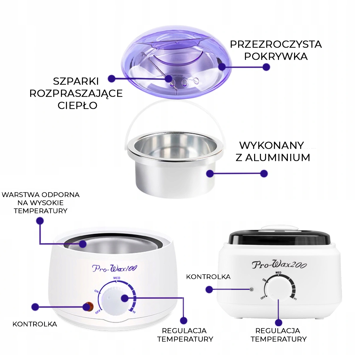 Podgrzewacz dołączony do zestawu to model: Pro-Wax 100 lub Pro-Wax 200 wysyłany w zależności od stanów magazynowych.