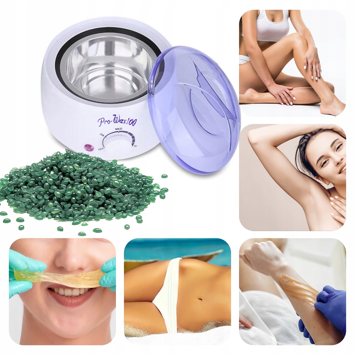 UWAGA! Przed przystąpieniem do depilacji należy koniecznie sprawdzić temperaturę podgrzanego wosku czy nie jest za wysoka! Za wysoka temperatura wosku grozi oparzeniem skóry!