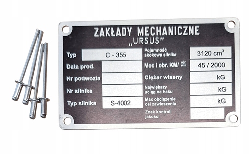 Replika tabliczki znamionowej do ciągnika rolniczego marki: