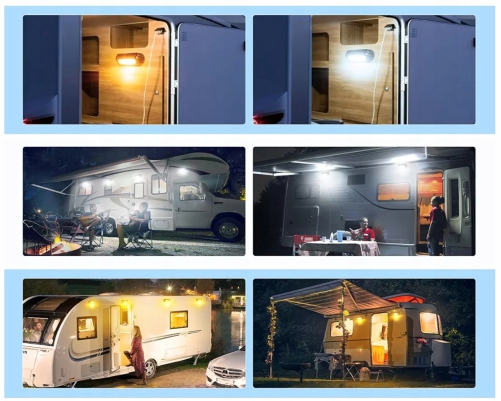 SUPAREE Oświetlenie LED do przyczepy kempingowej, 12 V, na zewnątrz, 12 V, 12 V, 3000 K + 6500 K, podwójne kolory, do kamperów, przyczep kempingowych, łodzi (1 sztuka)