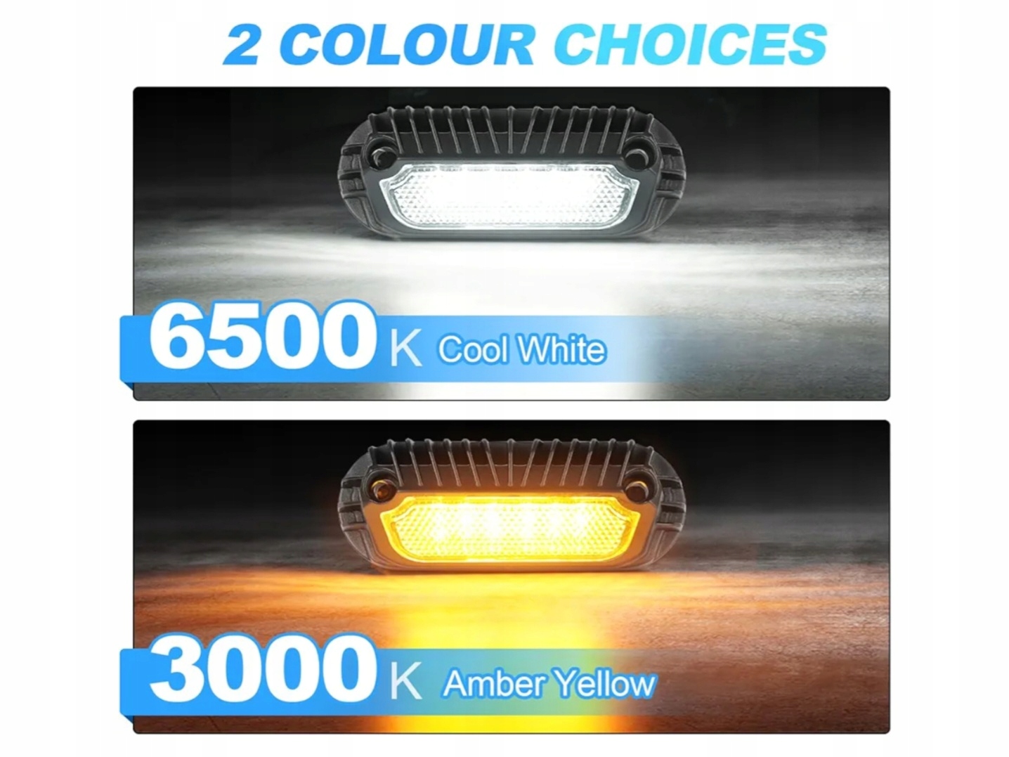 To oświetlenie LED do przyczepy kempingowej ma dwie kolory światła, które można dowolnie przełączać, 3000 K (światło bursztynowe), 6500 K (zimne światło). Temperaturę barwową można ustawić za pomocą przełącznika, ta lampa zewnętrzna LED do przyczepy kempingowej może spełnić różne potrzeby oświetleniowe.