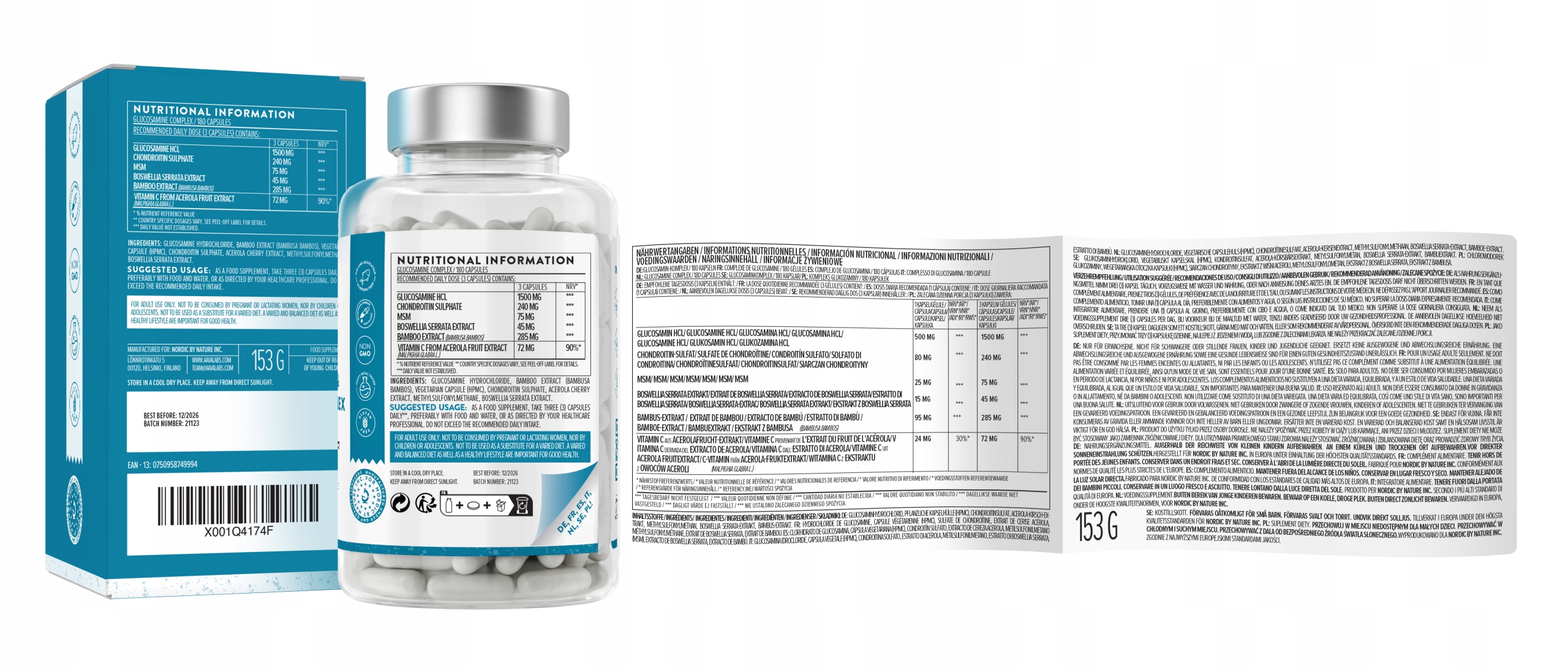 Название GLUKOZAMINA HCL + Chondroityna MSM Boswellia 180 kaps | Aavalabs