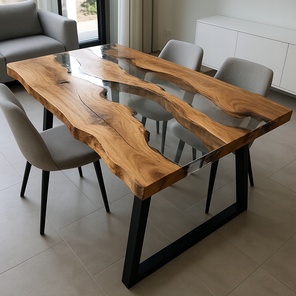 Nasza żywica odlewnicza klasy premium pozwala na zalewy o wysokości nawet 5 cm w jednej warstwie! To idealne rozwiązanie do tworzenia dużych stołów typu "river table", designerskich lamp czy innych projektów wymagających dużej objętości żywicy.