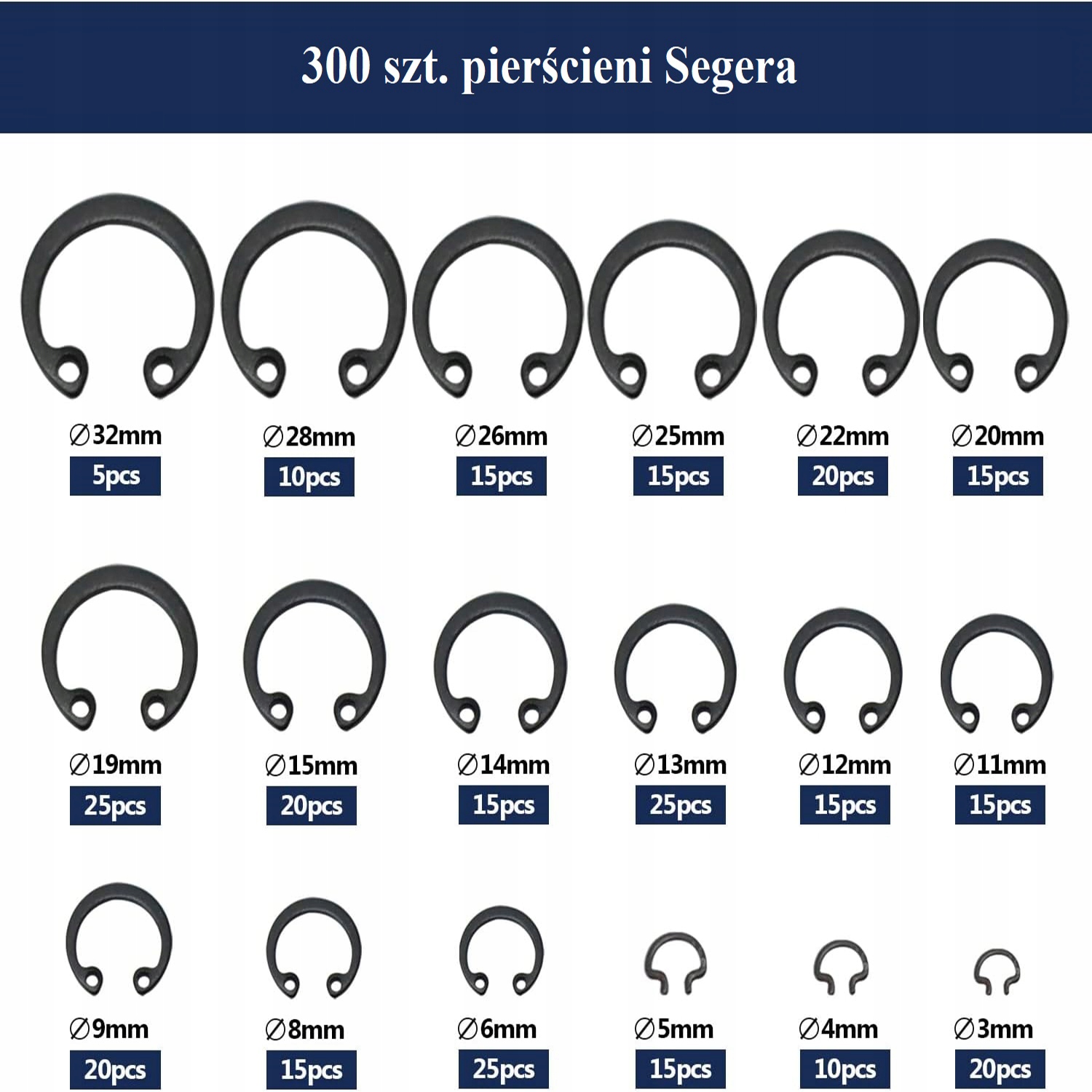 ✅ Tak, w komplecie znajduje się 18 rozmiarów pierścieni – od 3 mm do 32 mm.