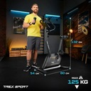 Dodatkowo pod ekranem znajduje się praktyczne miejsce na smartfona, dzięki czemu możesz oglądać filmy lub słuchać ulubionej muzyki podczas treningu. Komputer zasilany jest bateriami typu AAA (niedołączone do zestawu).