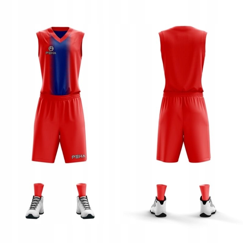 Strój koszykarski PEHA wykonany jest z najwyższej jakości materiałów typu Poliester 100% - materiał CoolMax – zwiększa wentylację i odprowadza nadmiar wilgoci z powierzchni ciała utrzymując je suche, a lekki, precyzyjnie dopasowujący się krój pozwoli na efektywniejsze wykorzystywanie energii podczas zawodów.