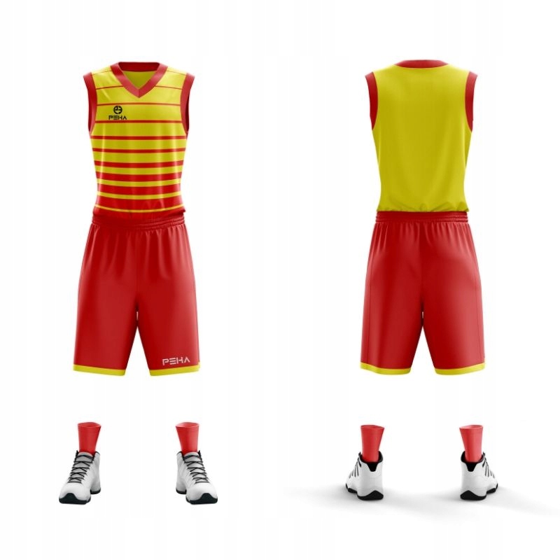 Strój koszykarski PEHA wykonany jest z najwyższej jakości materiałów typu Poliester 100% - materiał CoolMax – zwiększa wentylację i odprowadza nadmiar wilgoci z powierzchni ciała utrzymując je suche, a lekki, precyzyjnie dopasowujący się krój pozwoli na efektywniejsze wykorzystywanie energii podczas zawodów.