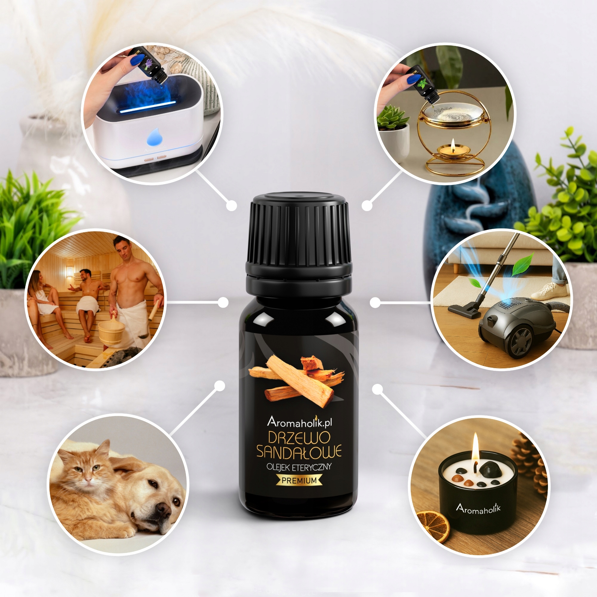 Olejek eteryczny z drzewa sandałowego charakteryzuje się głębokim, drzewnym aromatem, który wspiera zarówno zdrowie fizyczne, jak i duchowe. Stosując go, możesz odczuć wewnętrzne wyciszenie oraz równowagę, co czyni go idealnym wyborem do medytacji i praktyk duchowych. Olejek sandałowy jest ceniony za swoje właściwości przeciwzapalne i antyseptyczne. Działa także jako naturalny afrodyzjak, wspierając zmysłowość i bliskość emocjonalną.
