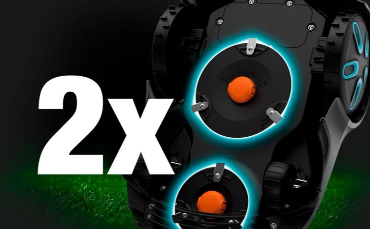 Inteligentny robot koszący SILENO free jest wyposażony nie w jedną, ale w dwie tarcze tnące - co pozwala na bardziej efektywne koszenie i i lepsze pokrycie trawnika w porównaniu z kosiarkami z mniejszą pojedynczą tarczą tnącą.