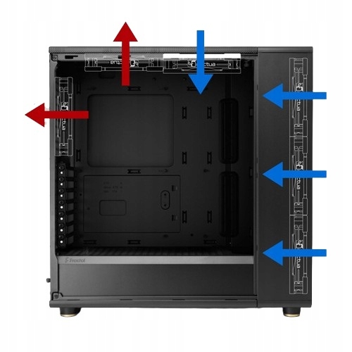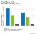 Testy przeprowadzone w laboratorium Noctua wykazały, że zastosowanie 6 wentylatorów wlotowych i wylotowych w mieszanej konfiguracji zapewnia najcichsze działanie w porównaniu do standardowego zestawu wentylatorów 2 z przodu i 1 z tyłu. Takie zastosowanie wentylatorów pozwala znacząco obniżyć prędkości obrotowe wentylatorów i poziom hałasu przy zachowaniu tej samej temperatury. W przypadku wentylatorów więcej znaczy ciszej!
