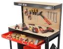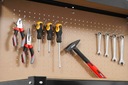 Dolna i górna półka oraz dodatkowa perforowana tablica na narzędzia z 10 haczykami umożliwiają dowolną aranżację i utrzymanie porządku w warsztacie. Maksymalne obciążenie tablicy to 20 kg.