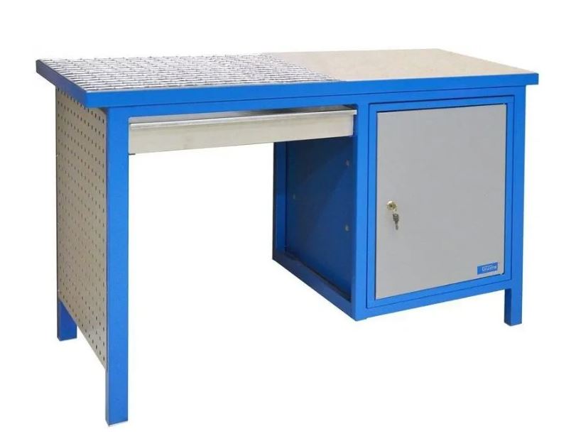 Dziurkowane ściany boczne stołu do zawieszenia półek i tac.