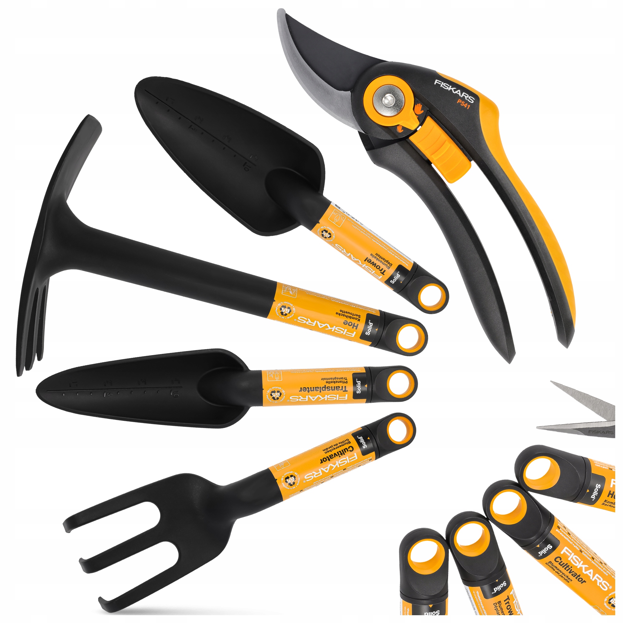 ŁOPATKA OGRODOWA GRABKI MOTYCZKA PAZURKI FISKARS + SEKATOR REGULOWANY P541