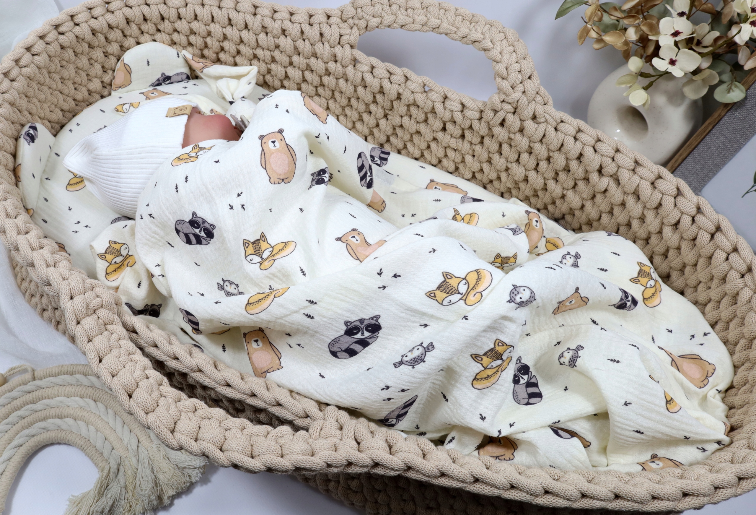 Kocyk uszyty z tkaniny muślinowej, cienki, bez wypełnienia