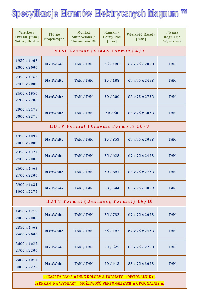 ▶️ Cechy – Ekran projekcyjny Avtek Video Electric 260